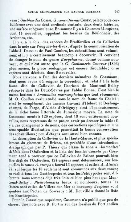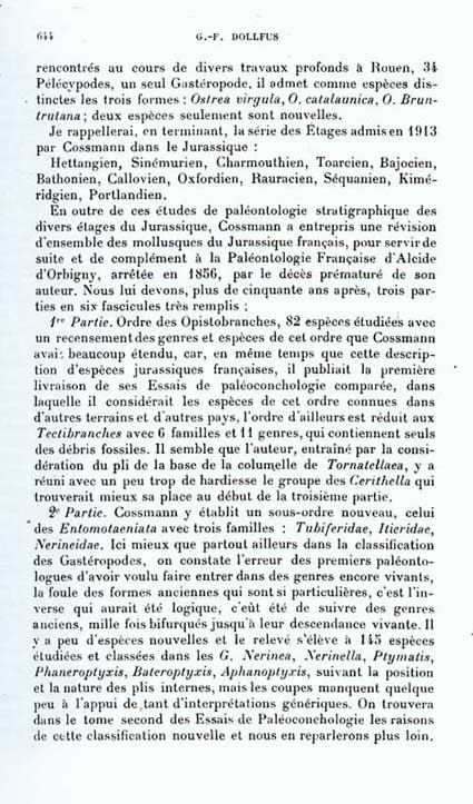 Notice nécrologique de Maurice Cossmann par G.F.Dollfus (1925)