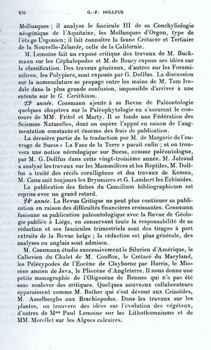 Notice nécrologique de Maurice Cossmann par G.F.Dollfus (1925)