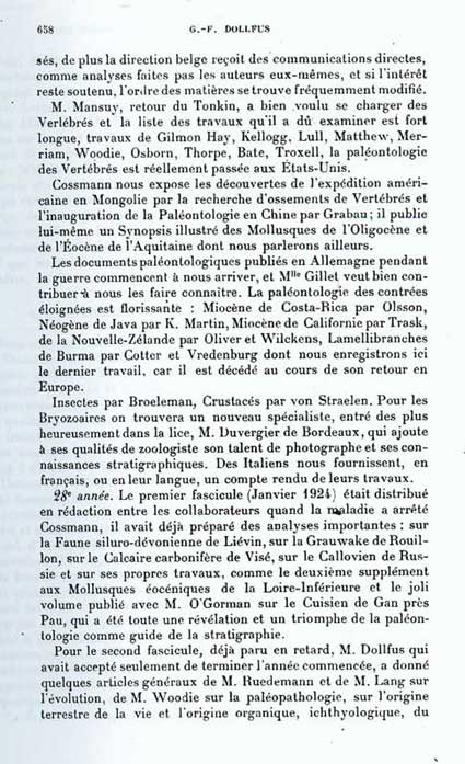 Notice nécrologique de Maurice Cossmann par G.F.Dollfus (1925)